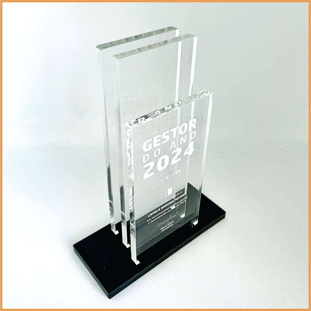 Padrão de Luxo: Acabamento artesanal e materiais nobres que transmitem o valor real da homenagem.